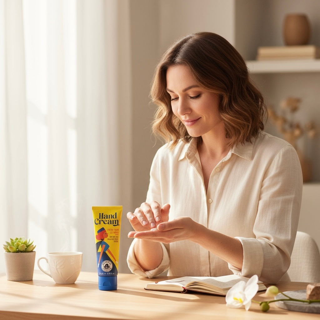 Indulge your hands with the elegance of pure organics. This luxurious, non-greasy formula sinks in instantly, delivering deep hydration and forming a soft protective veil — leaving skin silky, never sticky.